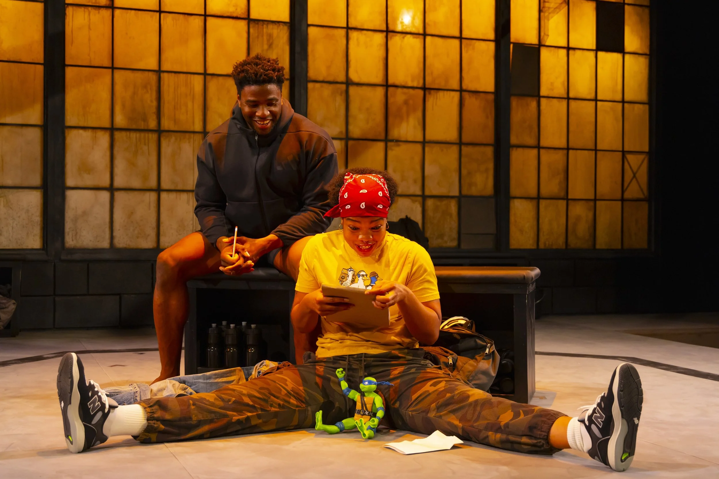 The theater turns into a bona fide gym as two punching bags are brought out from the wings and the actors don boxing gloves, squaring up with the bags and with one another. The audience feels like they’re at a real fight. “Every night one of the main reflections that we get is, ‘I was tired watching y’all,’” says Mizzelle.