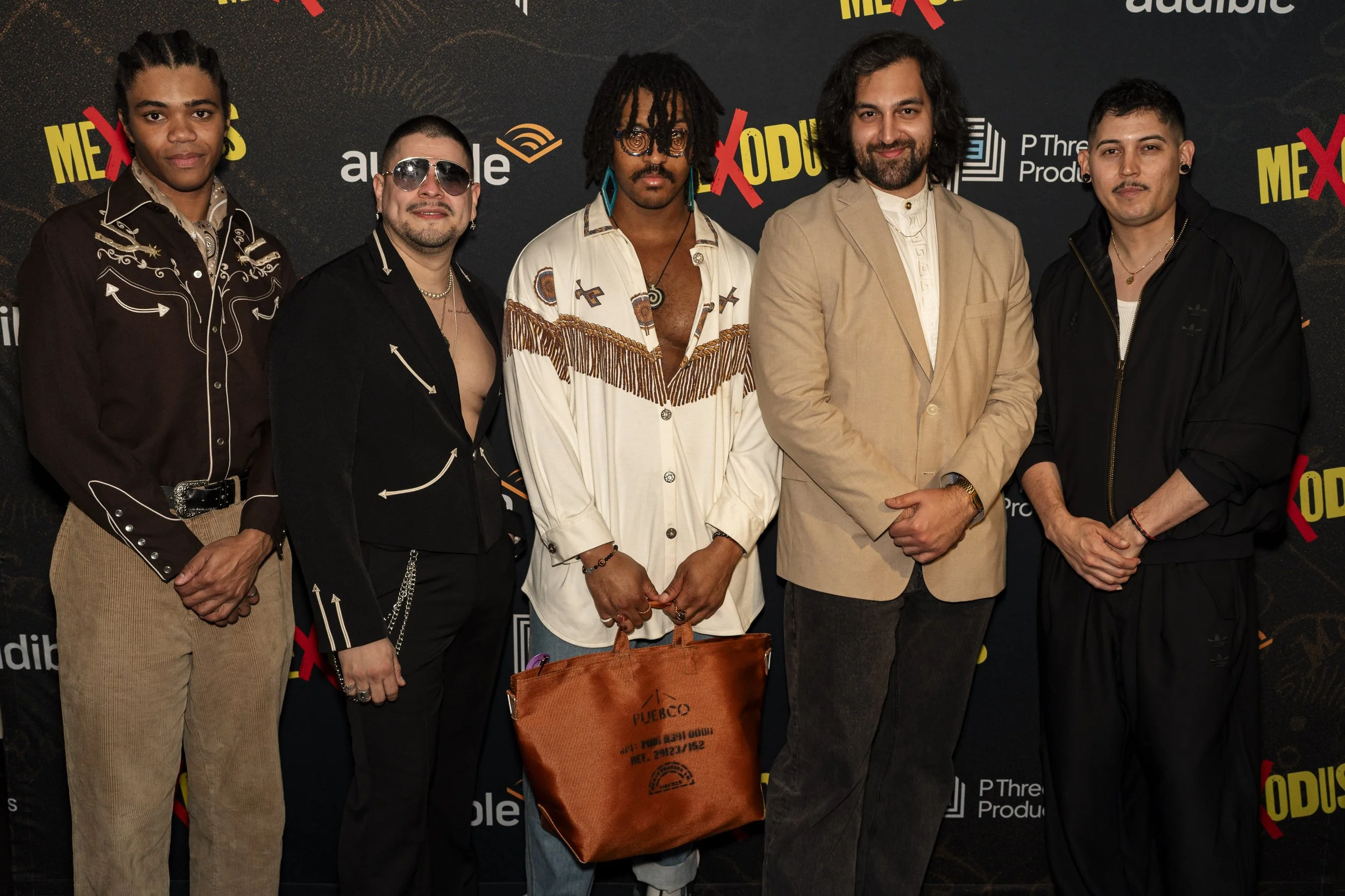 Trent Lawson, Brian Quijada, Nygel D. Robinson, Alan Mendez, and director David Mendizábal on opening night of Mexodus at the Daryl Roth Theatre. Photo: Marcus Middleton.