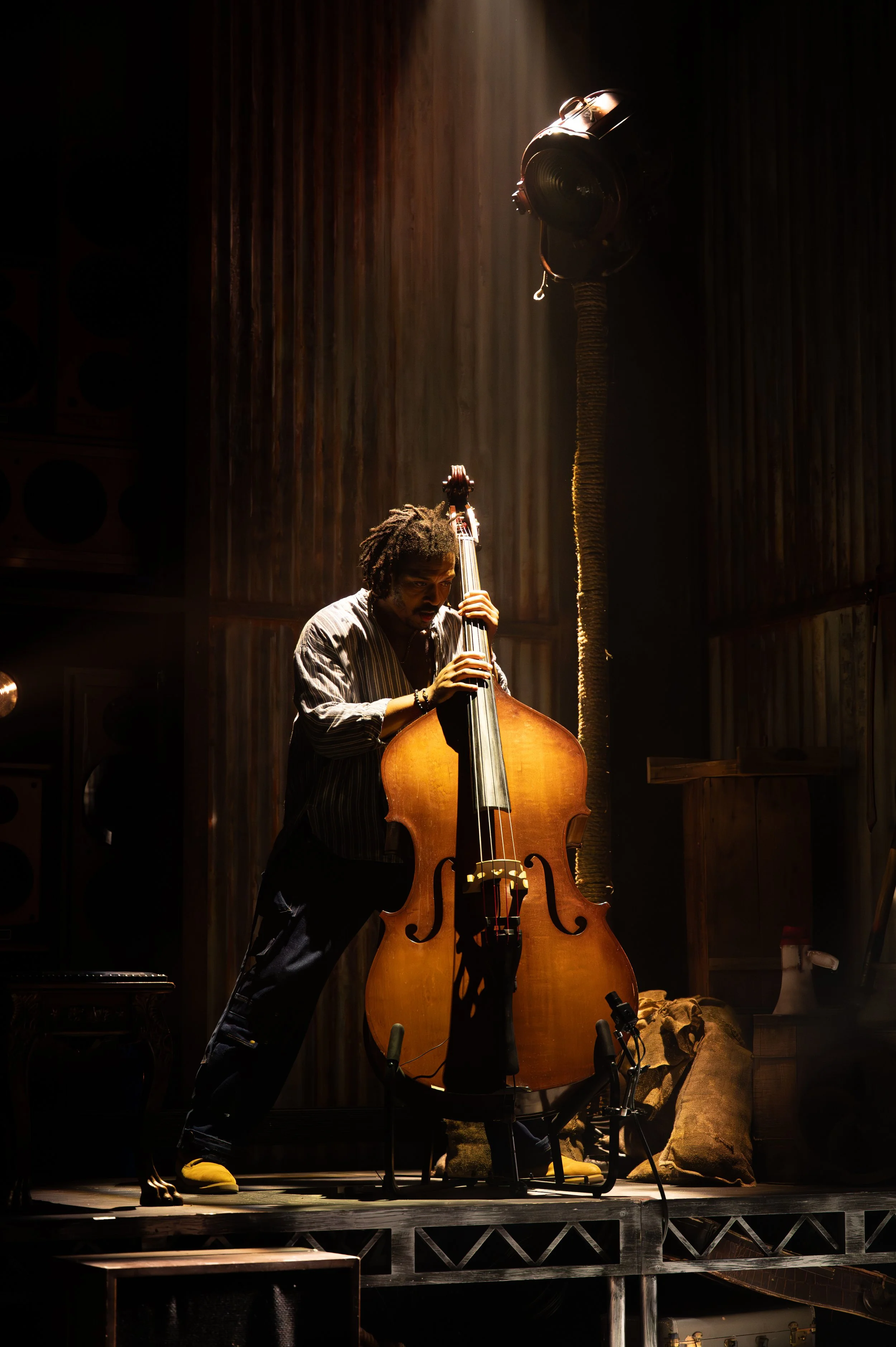 Robinson on the upright bass, one of many instruments each performer plays. Photo: Thomas Mundell.